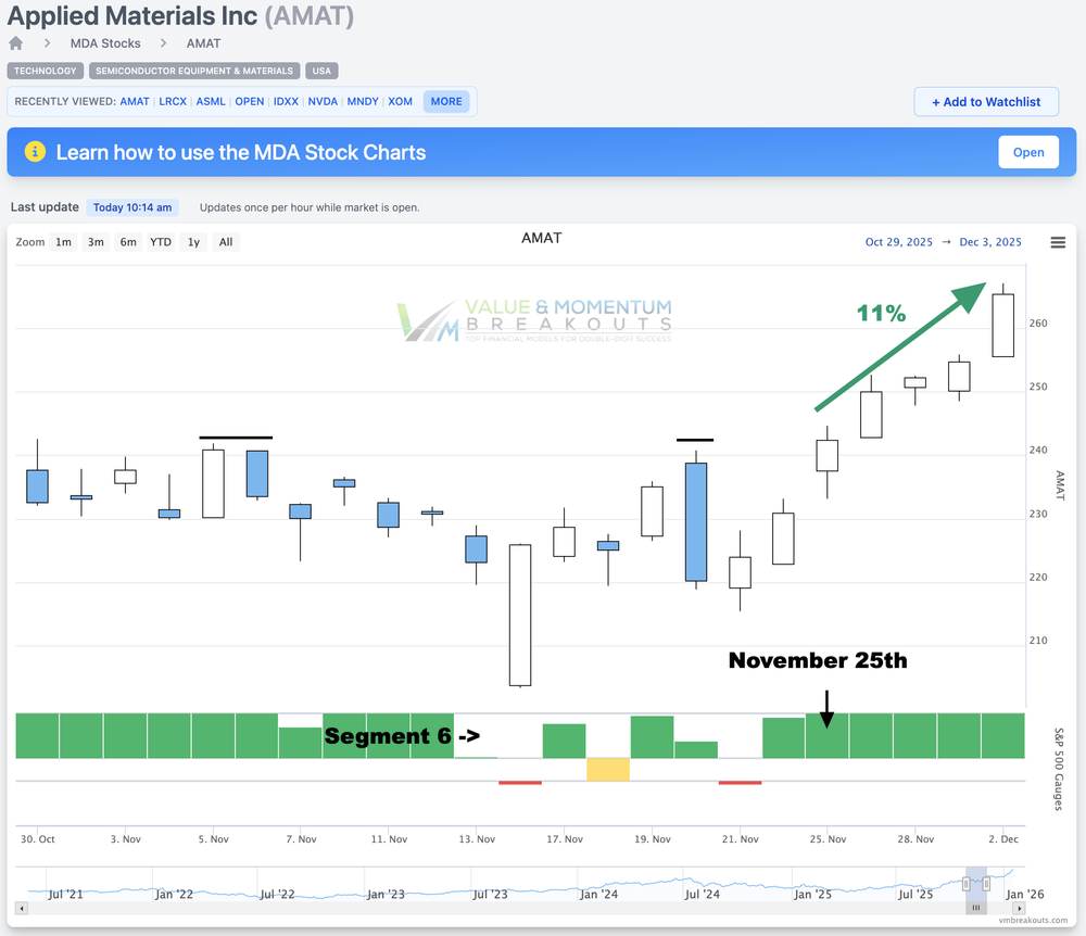 $AMAT also picked on Nov 24th gained +16%, sometimes its the same winners that come back. Volatility provides many opportunities and V&M breakouts can help you identify when might be a good time to enter and exit! Try it free for 24 days and use the new watchlist feature to keep an eye on your portfolio!